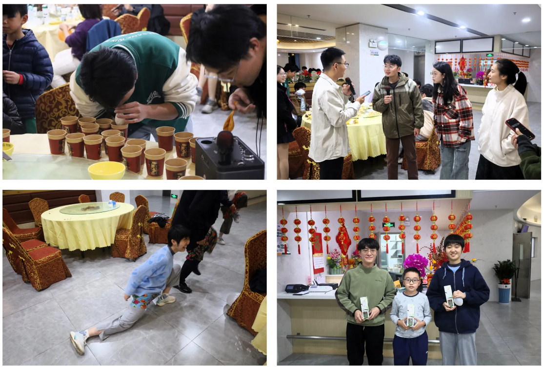 师生们分组协作,挑战气球运杯的默契配合,参与默契组词的智慧碰撞,还有让人捧腹的鸿运上身挑战,每一个游戏都考验着团队的凝聚力与创造力,更让每一个人在欢笑中忘却了冬日的寒冷,沉浸在这片欢乐的海洋中。