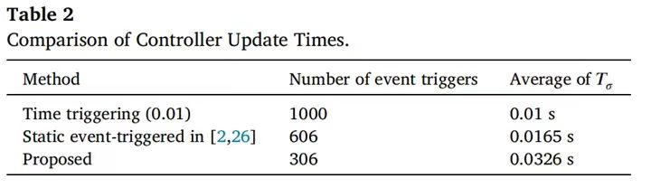 1. 本研究将动态事件触发机制与预定义时间控制理论相结合来处理网络化无人机控制的姿态稳定问题,设计出基于动态事件触发机制的分段滑模选择功能的辅助变量构造方法,触发机制自适应动态改变从而显著降低了系统计算负担,提升网络利用率。对比传统时间触发方法,资源优化达到69.4%,且将平均事件触发间隔时间扩大1.65倍;对比传统固定阈值事件触发机制,资源优化达到49.5%,且将平均事件触发间隔时间扩大3.26倍;