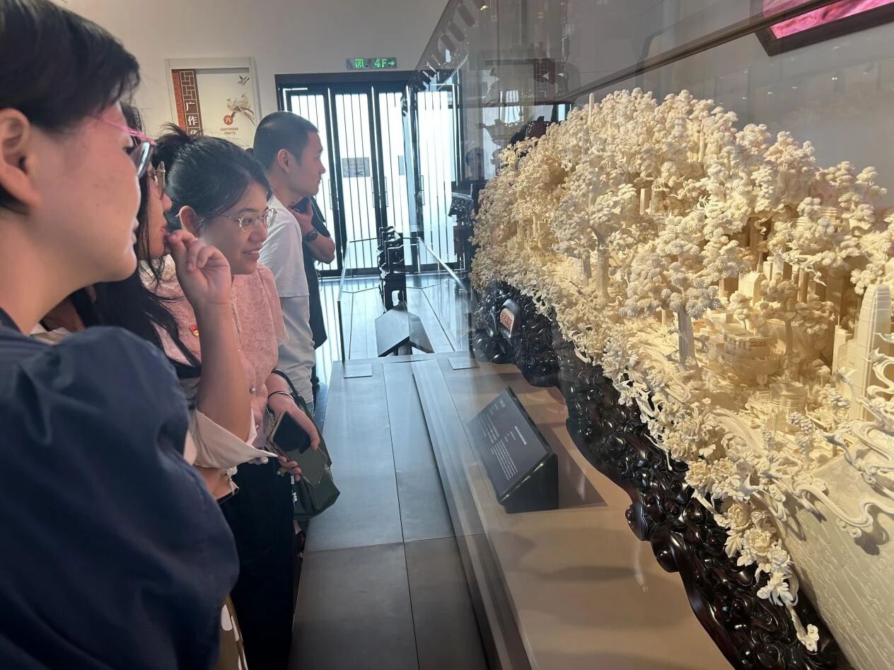 在中心阁,支部党员认真聆听讲解员介绍萧派面塑、广州牙雕、广州榄雕等非物质文化遗产展品,近距离感受了世代传承的匠人传统工艺。每道纹路都凝聚着老手艺人的温度,每一处细节都承载着千百年的文化记忆。随后支部党员参观了翰墨园、曲艺园、广府园等主题园区,深入领略岭南园林的艺术特色与文化精髓,体会这座城市深厚的历史积淀、开放包容的匠心精神与绵延不绝的文脉书香。