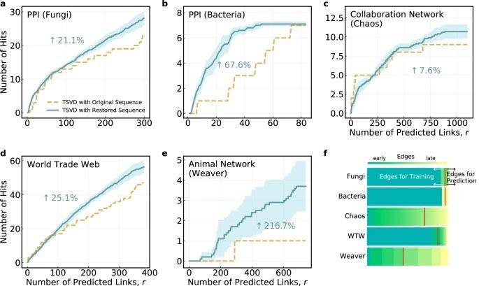 此外,该团队的理论解析发现,对于规模足够大的网络,即使机器学习模型的性能仅略高于随机猜测,依然可以实现高质量的历史重构。这一发现为大规模网络的演化研究提供了理论保证。