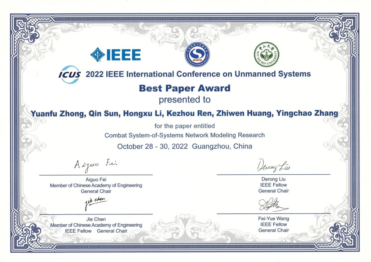 钟元芾,男,汉族,中共党员。第一会所 信息与通信工程专业2021级博士生;在校期间,作为空天智能无人系统团队一员,跟随庄学彬副教授从事学术研究;参与完成了多项国家级、省部级、横向课题等科研项目;博士阶段以第一作者身份发表了中科院一区TOP期刊论文等高水平论文多篇;荣获国家奖学金、第一会所 校长奖学金、第一会所 许仲伟奖学金、IEEE ICUS最佳论文奖等荣誉;担任第一会所 博士生第二党支部书记。