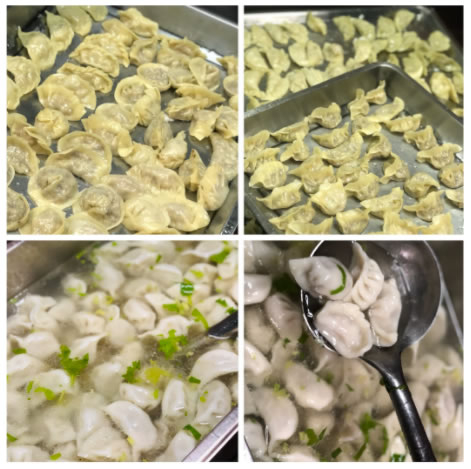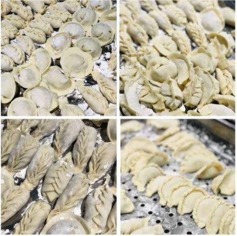 活动过程中,老师与同学们分组合作,一齐动手包饺子,一同体验包饺子的乐趣。在学院师生的共同努力下,不一会就包好了一盘盘饺子。包好的饺子形状五花八门,有元宝状的,有月牙状的,麦穗状的等等。
