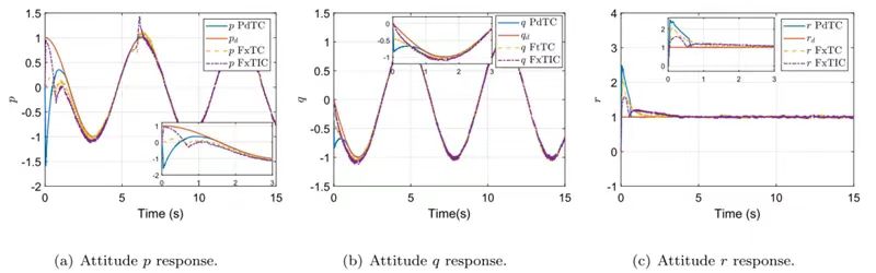 3. 建立的新型容错控制协议成功实现无人机姿态误差的预定义时间收敛即使实在扰动,内部不确定性和执行器故障的约束下,系统收敛时间完全由预设参数决定。